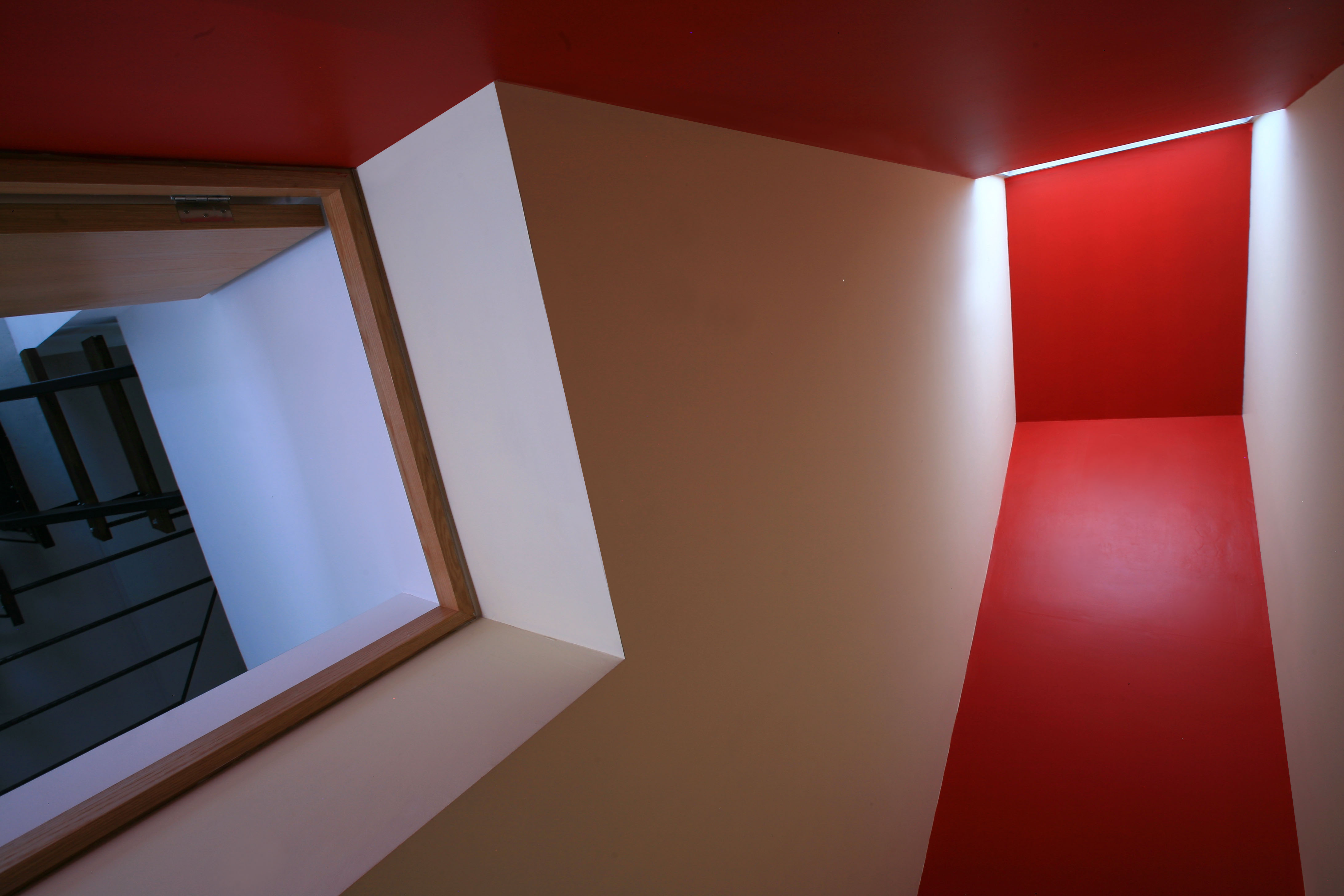 El acceso desde la calle es a través de una rampa vehicular que converge en la planta alta donde se encuentran las áreas sociales, la recámara principal y el despacho. De ahí se desciende a la planta inferior que tiene un salón de juegos y dos recámaras.