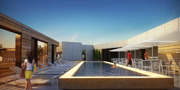 La arquitectura es de carácter neo racionalista, así como el mobiliario diseñado también por Pascal Arquitectos, que se desplanta sobre pisos de encino. Mismo material que se usó en plafones, resultando en un diseño coherente y congruente entre sus partes.