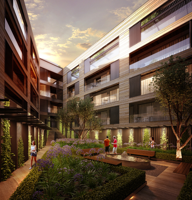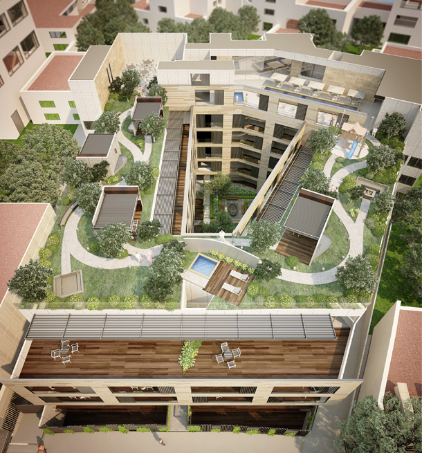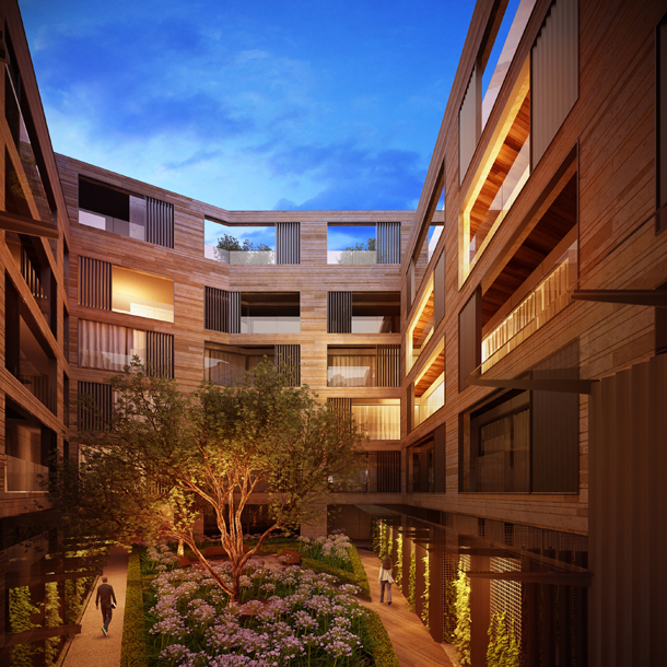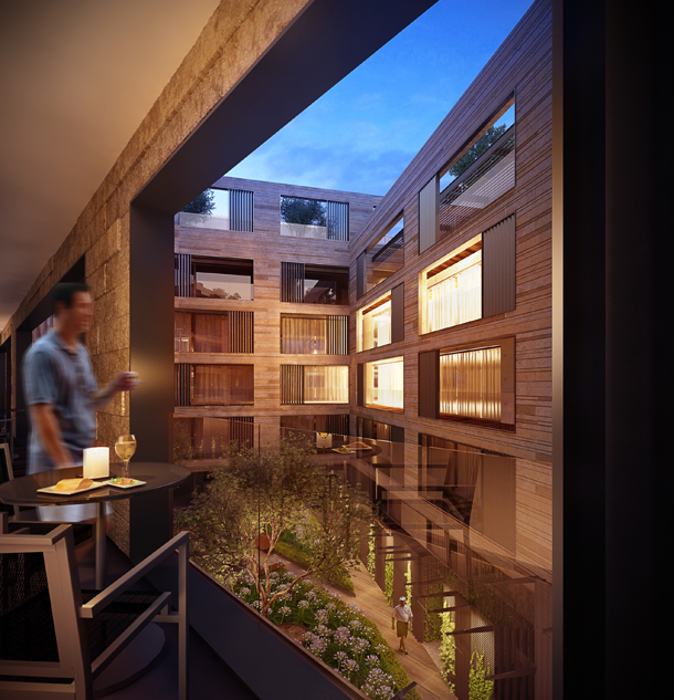 Las vistas están orientadas hacia el bosque y todos los espacios tienen salida a terrazas techadas. Las fachadas y el piso están hechas de mármol Santo Tomás.