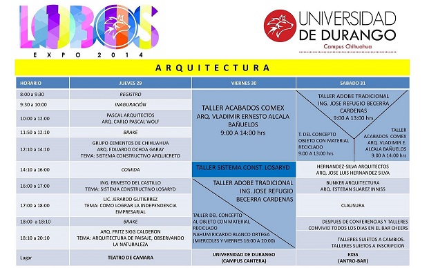 Posted in arquitectos, arquitectura, carlos pascal, expolobos, gerard pascal, pascal arquitectos Pascal Arquitectos conferencia el 30 de mayo 10:00 am Expolobos 2014, Universidad de Durango Campus Chihuahua 27 mayo, 2014 · by Comment by